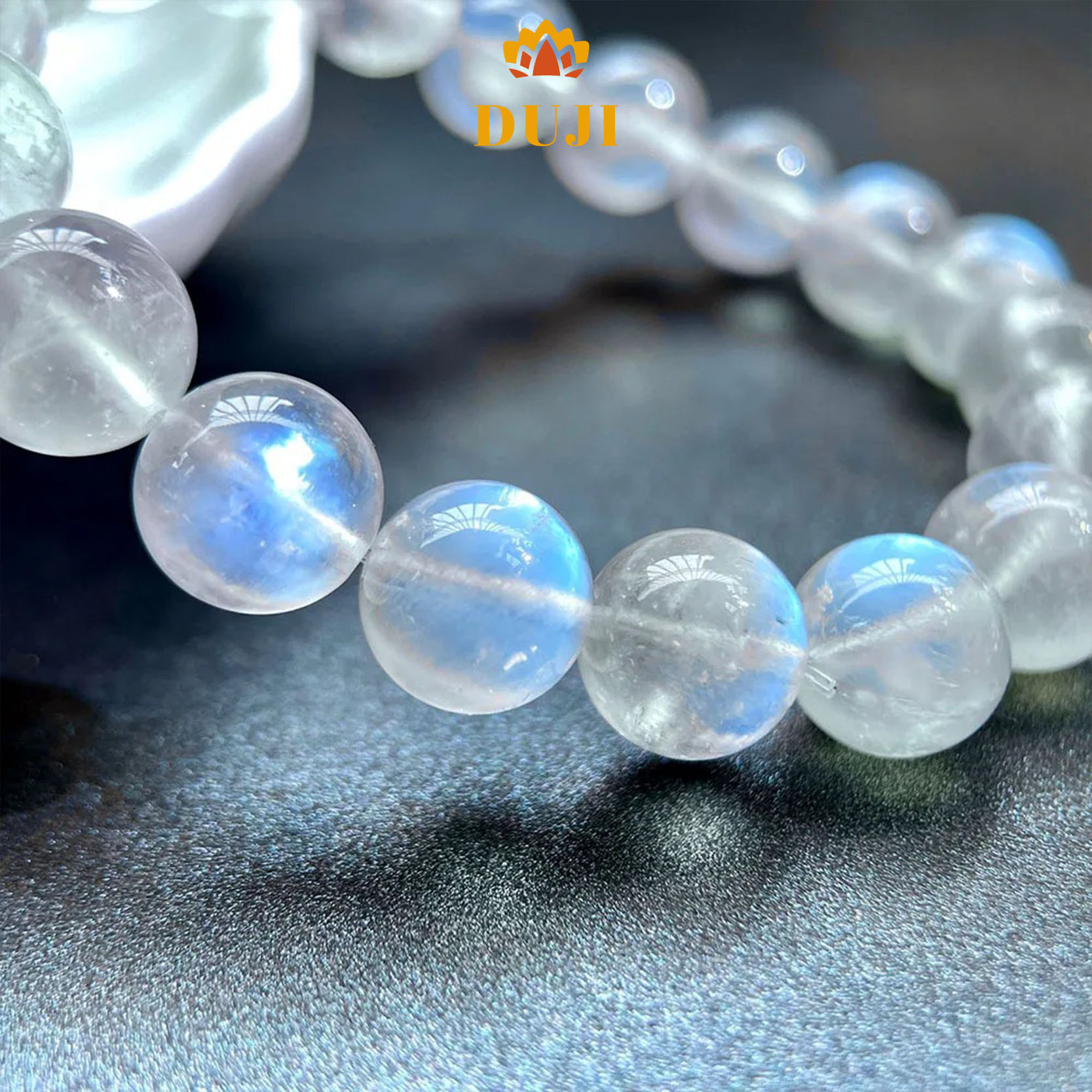 Đá Moonstone là một loại khoáng vật thuộc nhóm feldspar, có bề mặt lấp lánh ánh sáng kỳ ảo giống như ánh trăng, tạo nên một vẻ đẹp mơ màng, huyền bí. Nhờ vào hiệu ứng ánh sáng đặc biệt này, Moonstone đã được đặt tên theo ánh trăng, và nó được cho là mang lại sự hòa hợp và cân bằng cho người sử dụng.