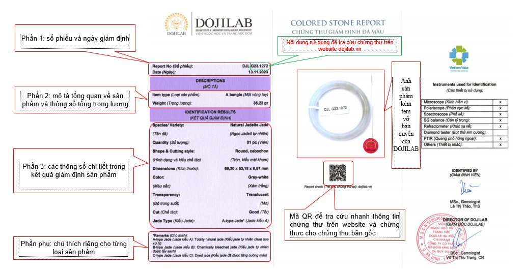 Giấy kiểm định đá quý xác định các đặc điểm cơ bản của đá như màu sắc, nguồn gốc và thành phần hóa học, nhưng không phải lúc nào nó cũng phản ánh giá trị thực tế trên thị trường. Việc đánh giá giá trị của đá quý cần xét đến nhiều yếu tố khác như độ hiếm, chất lượng và độ hoàn thiện của viên đá. Do đó, giấy chứng nhận kiểm định là một công cụ hỗ trợ, không phải yếu tố duy nhất quyết định giá trị của đá quý.