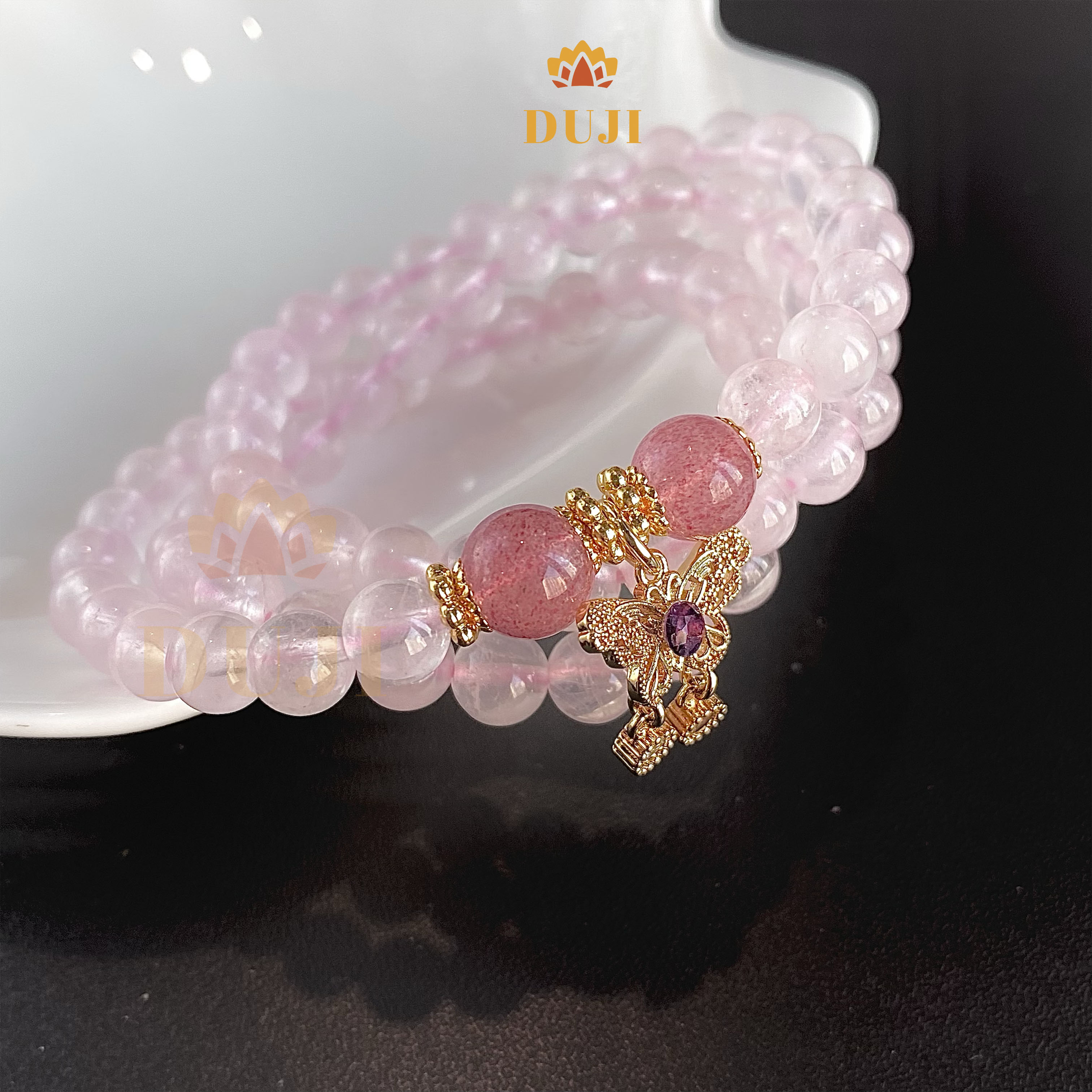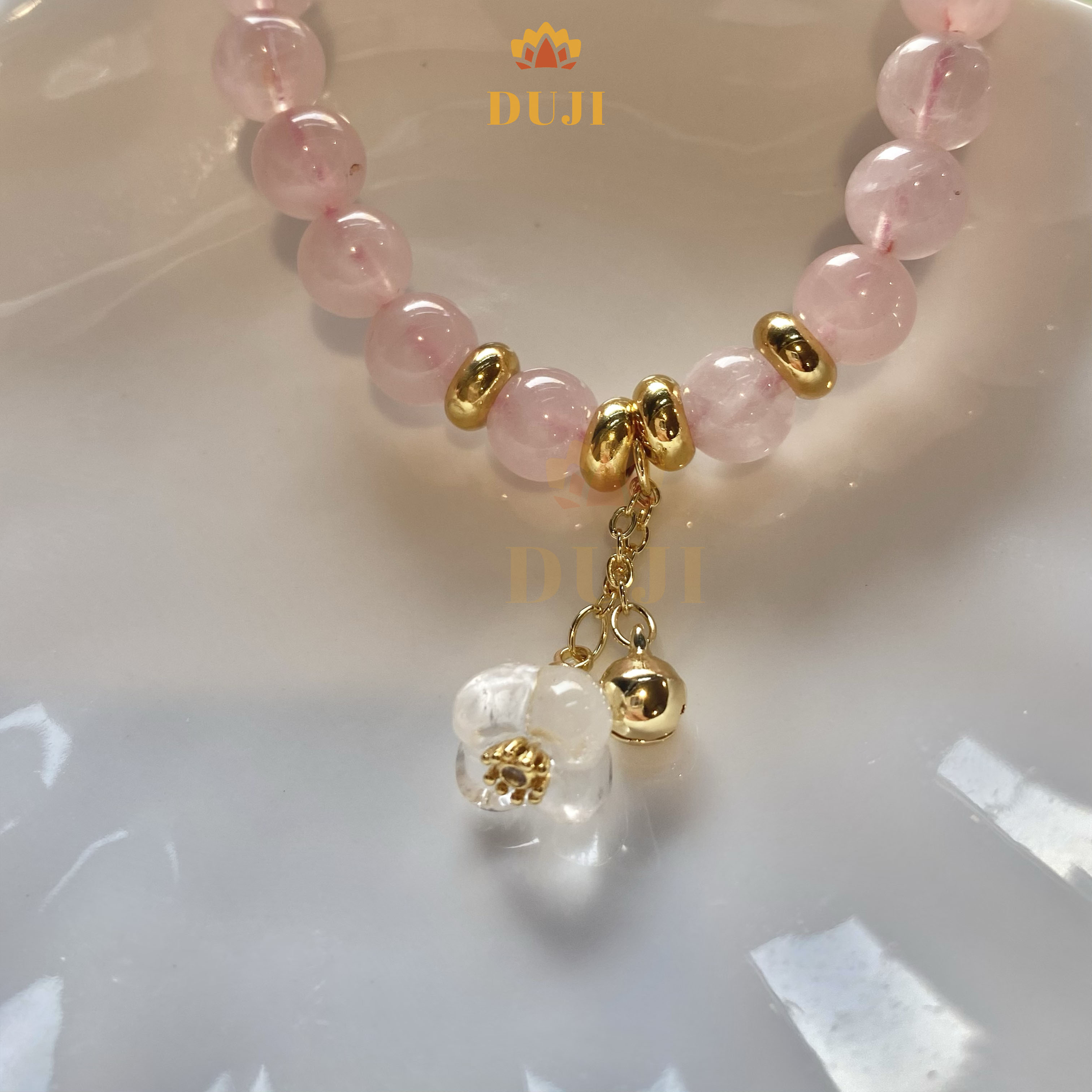 - Vòng tay thạch anh hồng: Đây là một trong những cách dễ dàng nhất để mang theo thạch anh hồng bên mình. Vòng tay thạch anh hồng giúp bạn thu hút tình yêu, mang lại sự bình an và may mắn, đồng thời cũng là món trang sức sang trọng, làm tôn lên vẻ đẹp cá nhân.