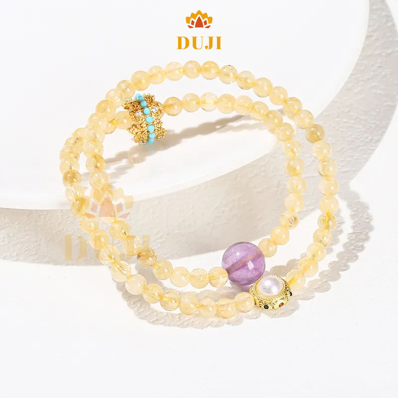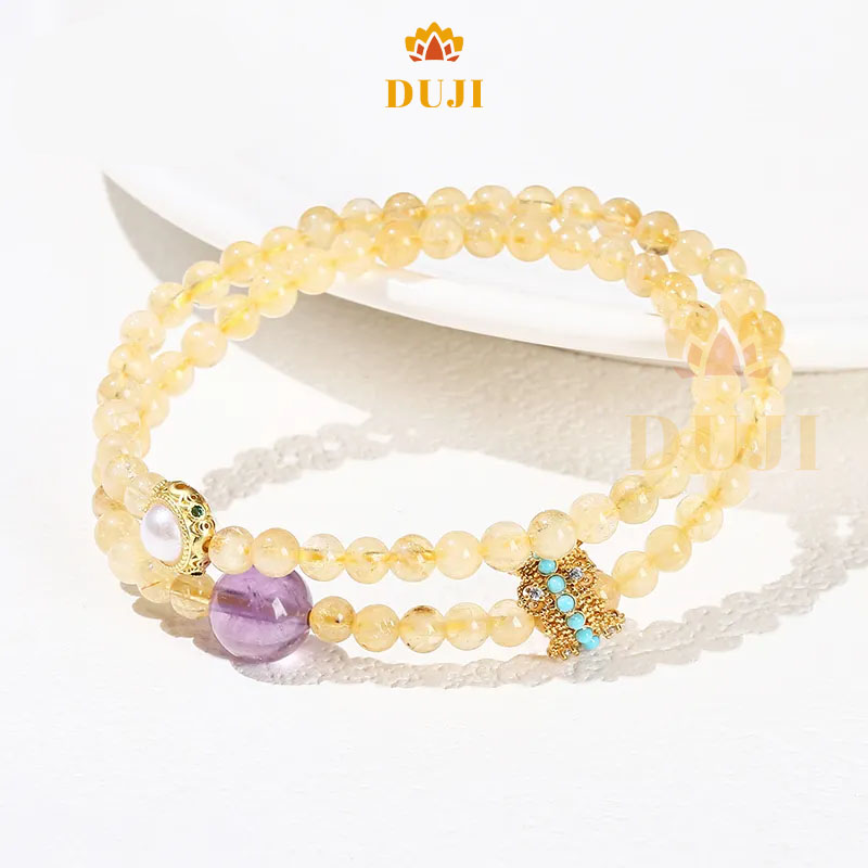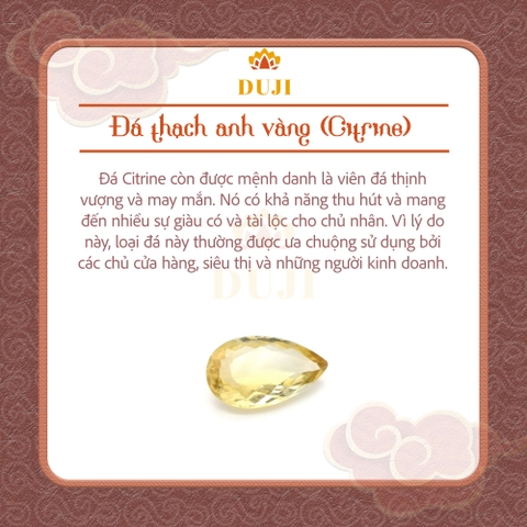Citrine, với màu vàng tươi sáng, không chỉ là một món đồ trang sức bắt mắt mà còn mang đến nguồn năng lượng tích cực và may mắn cho người sở hữu. ![]()