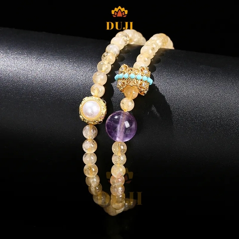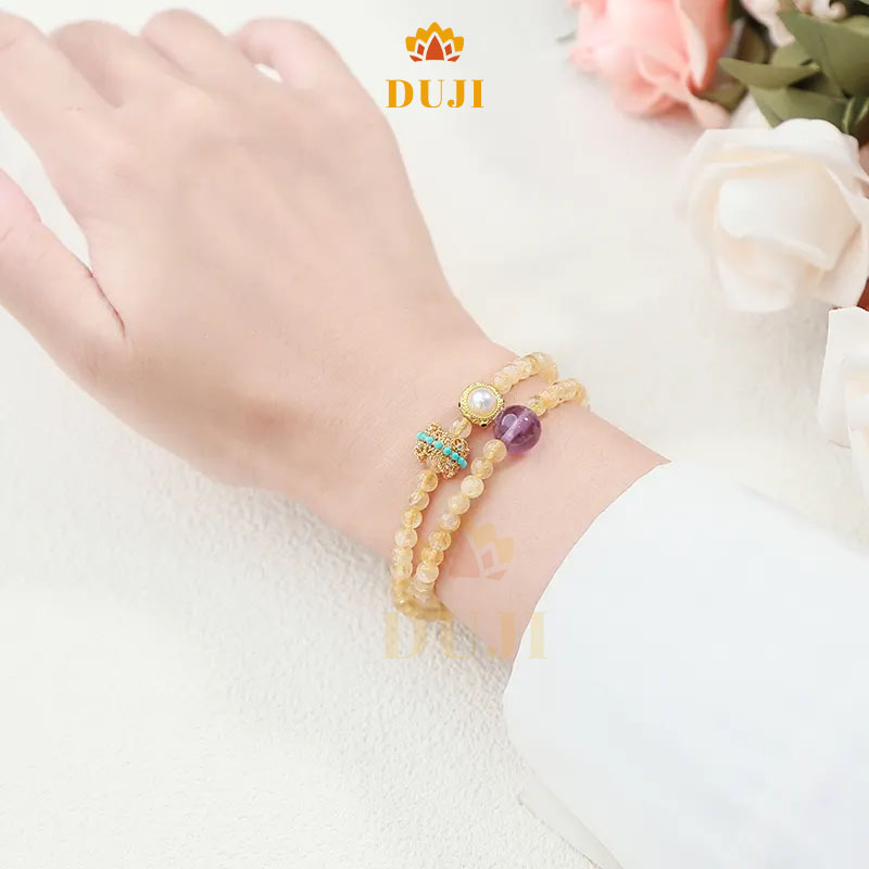Vòng tay chuỗi quấn 2 vòng thạch anh vàng Citrine đá tự nhiên 100%
